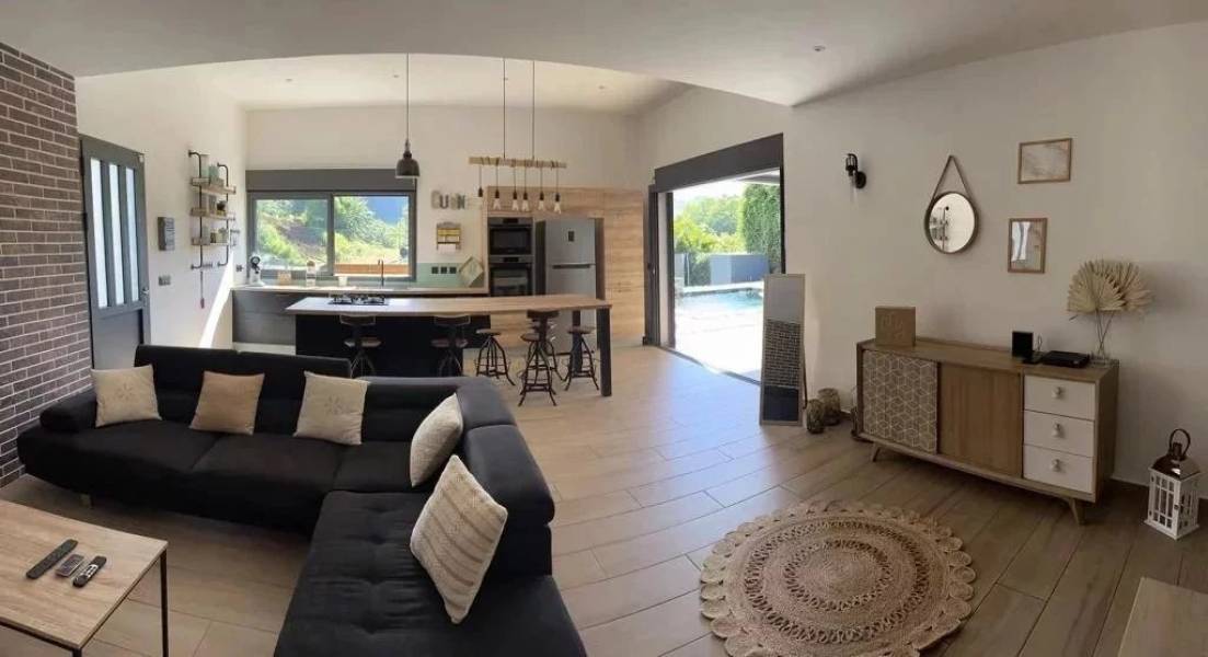 L’espace de vie d’environ 30m² avec cuisine équipée ouverte sur séjour et donnant accès à la terrasse couverte, offre un cadre parfait pour se détendre. La partie nuit se compose d’un dégagement desservant 3 chambres (dont une suite parentale climatisée avec douche et dressing), une salle de bains avec douche, baignoire et double vasques, 1 WC séparé, un garage. L'extérieur est composé d'un jardin clôturé avec piscine.