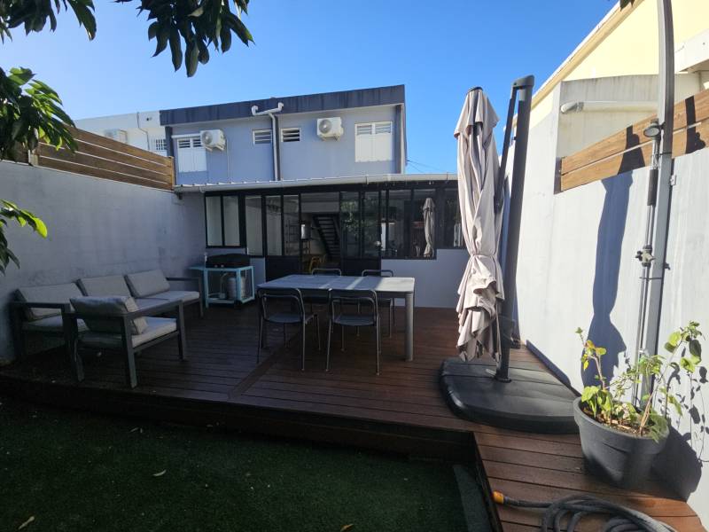 LNA vous présente une nouvelle exclusivité : à quelques pas du boulevard Sud, entrée Ouest et accès Bellepierre, jardin de l'Etat ou Providence très aisés, cette maison de ville bien restaurée entre 2016 et 2020 vous offre tout le confort souhaité en meublé. 3 chambres et un bureau climatisé, salle d'eau à l'étage et salle d'eau en RDC, garage, vaste séjour traversant avec cuisine et arrière-cuisine intégrés, ouvrant sur une terrasse ensoleillée avec un pied de litchee pour vous ombrager. En fond d'impasse, l'ameublement est optimisé et vous laisse place pour votre aménagement dans les meilleures conditions. Libre immédiatement, un bien à découvrir avec LNA, visites sur dossier. Louis Sinimale : [coordonnées réservées]. Exclusivité La Nouvelle Agence, services immobiliers sur-mesure !