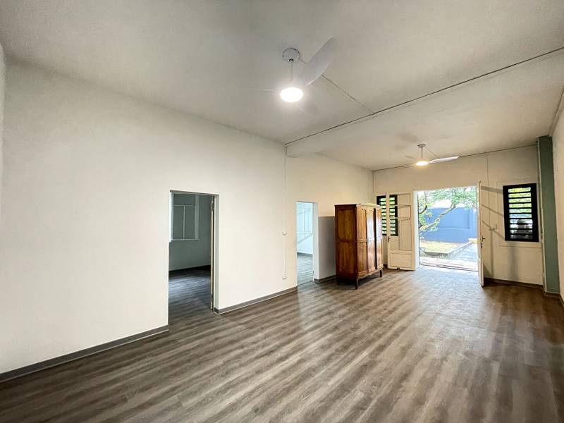 LL'agence LOGER vous propose à la location une charmante maison de type SATEC d'une superficie d'environ 120 m², édifiée sur une parcelle arborée de près de 1 400 m². Idéalement située, elle bénéficie d'un emplacement privilégié, à proximité du centre commercial Leclerc Butor et du stade Raphaël Babet. Actuellement en cours de réhabilitation complète, cette maison offre des volumes généreux et un agencement fonctionnel. Elle se compose d'une agréable varangue de 10 m² servant d'entrée, d'un vaste séjour lumineux de 32 m², ainsi que de quatre chambres climatisées d'environ 14 m² chacune. Vous disposerez également d'une arrière-pièce pouvant être aménagée en salle à manger, d'une cuisine indépendante, d'une salle d'eau et de deux WC. Pour un confort optimal, toutes les pièces de vie sont équipées de brasseurs d'air. A l'extérieur, vous apprécierez un grand jardin arboré, un espace de détente couvert, ainsi qu'un garage et plusieurs places de stationnement (jusqu'à 3 véhicules). Entretien du jardin inclus dans le loyer Un bien rare sur le secteur, à découvrir sans tarder ! Les informations sur les risques auxquels ce bien est exposé sont disponibles sur le site Géorisques : www.georisques.gouv.fr Laurent FAUCHON (EI) Agent Commercial - Numéro RSAC : - .