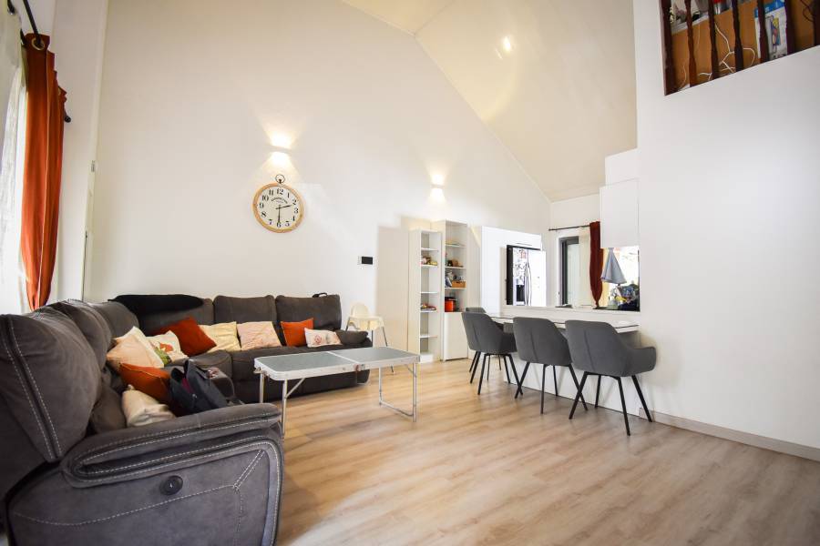 Grande de 135m2 de surface habitable, elle est idéale pour une famille qui pourra se prélacer sur son immense terrasse et son jardin arboré dans ce terrain de 1068m2.