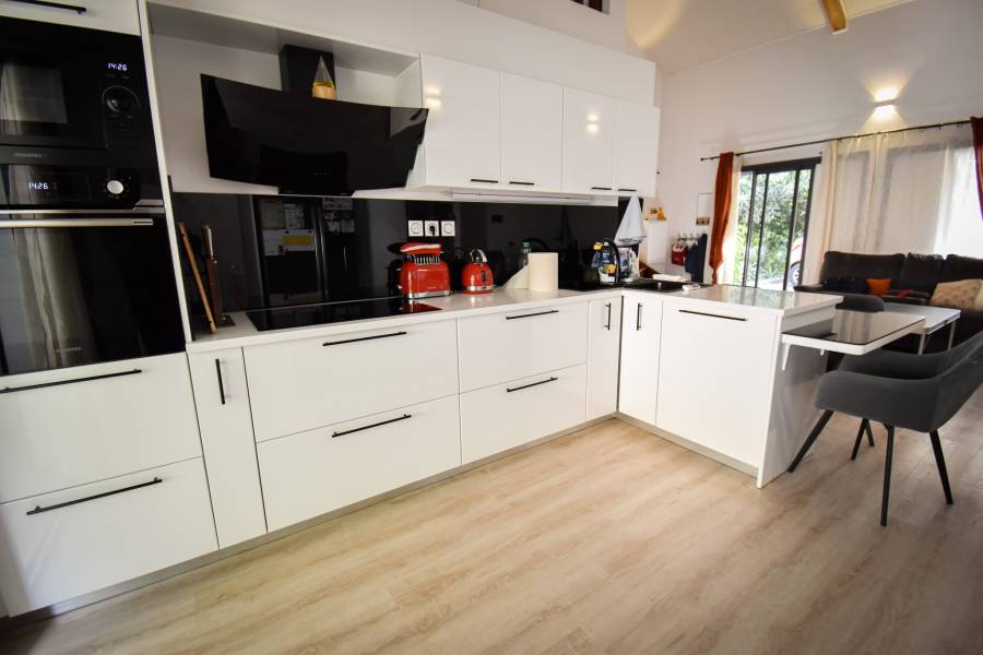 Vous disposerez également d'une cuisine extérieure pour les jours plus chauds. Pour vos véhicules, un garage ainsi qu'une allée sont présents.