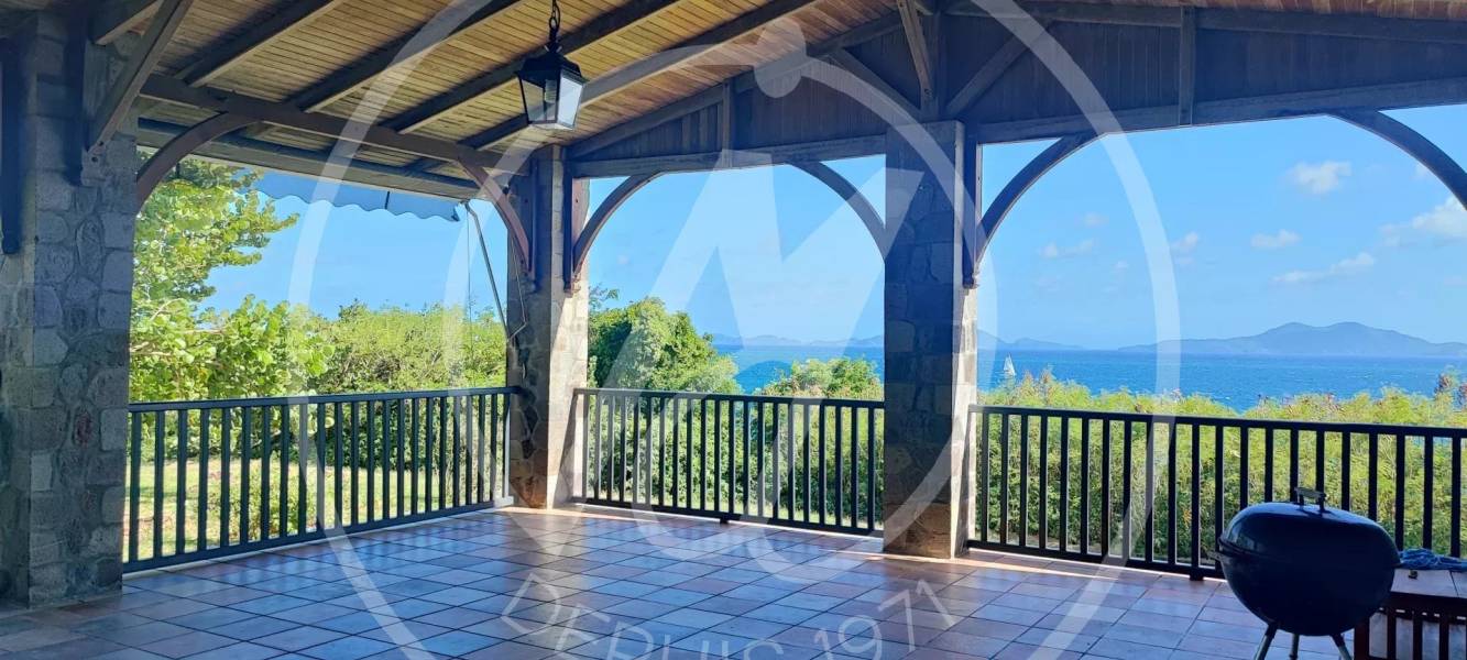 Elle comprend une cuisine aménagée, un séjour d'environ 65 m² donnant sur une belle terrasse de 50 m² avec une magnifique vue sur Les Saintes, une première chambre climatisée avec rangement et sa salle d'eau, une deuxième chambre avec dressing et salle d'eau, un wc visiteur.