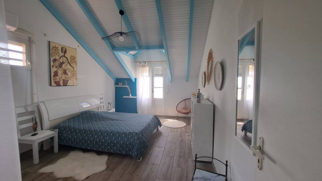 - Á l’étage : une mezzanine conviviale desservant 3 chambres (dont 2 avec balcon privatif bénéficiant d'une superbe vue mer) avec leur propre salle d’eau ainsi qu’un WC indépendant.