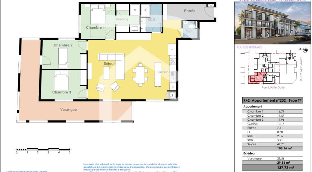 L'agence Sixième Avenue vous propose un appartement T4 neuf à venir au coeur du centre-ville de Saint Denis, à La Réunion. Il est intégré dans une copropriété de 11 logements seulement. Profitez d'un emplacement exceptionnel offrant un cadre de vie unique! Ce logement est éligible au dispositif Girardin IS- Quater W. N'hésitez pas à nous contacter pour plus d'informations. Une opportunité à ne pas manquer dans le carré d'or de Saint-Denis. Nombre de lots : 15 lots principaux dont 11 logements Pas de procédure en cours Mandat n°:117 Prix du bien : 729 880 euros TTC FAI Honoraires à la charge du vendeur Non soumis au DPE Consommation énergie primaire : Non communiquée. Consommation énergie finale : Non communiquée. Les informations sur les risques auxquels ces biens est exposés sont disponibles sur le site Géorisques : www.georisques.gouv.fr