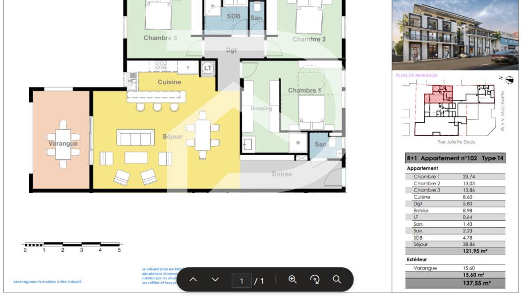 L'agence Sixième Avenue vous propose un appartement T4 neuf à venir au coeur du centre-ville de Saint Denis, à La Réunion. Il est intégré dans une copropriété de 11 logements seulement. Profitez d'un emplacement exceptionnel offrant un cadre de vie unique! Ce logement est éligible au dispositif Girardin IS- Quater W. N'hésitez pas à nous contacter pour plus d'informations. Une opportunité à ne pas manquer dans le carré d'or de Saint-Denis. Nombre de lots : 15 lots principaux dont 11 logements Pas de procédure en cours Mandat n°:117 Prix du bien : 724 335 euros TTC FAI Honoraires à la charge du vendeur Non soumis au DPE Consommation énergie primaire : Non communiquée. Consommation énergie finale : Non communiquée. Les informations sur les risques auxquels ces biens est exposés sont disponibles sur le site Géorisques : www.georisques.gouv.fr